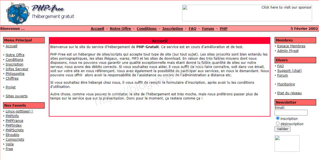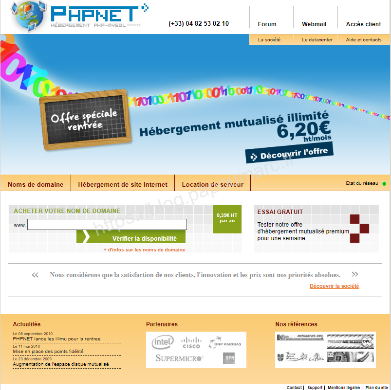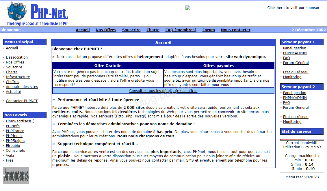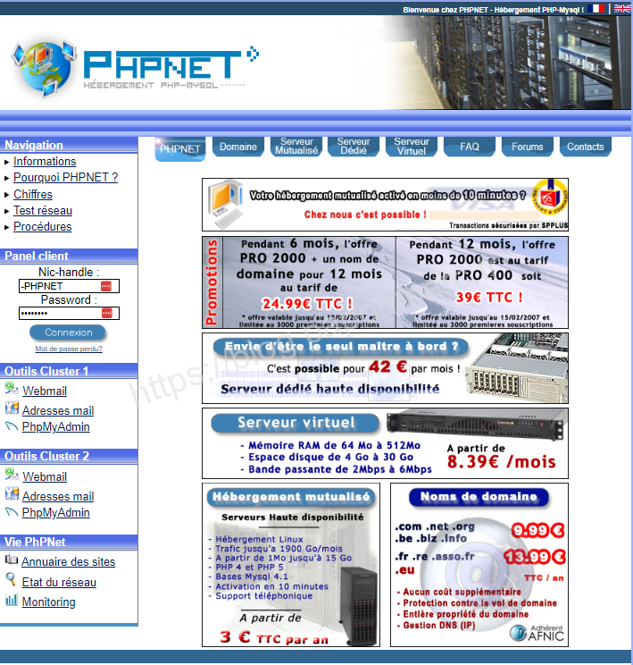 De souvenir PHPNET s’hébergeait chez OVH, OVH, qui à l’époque, commençait un partenariat catastrophique avec Free.