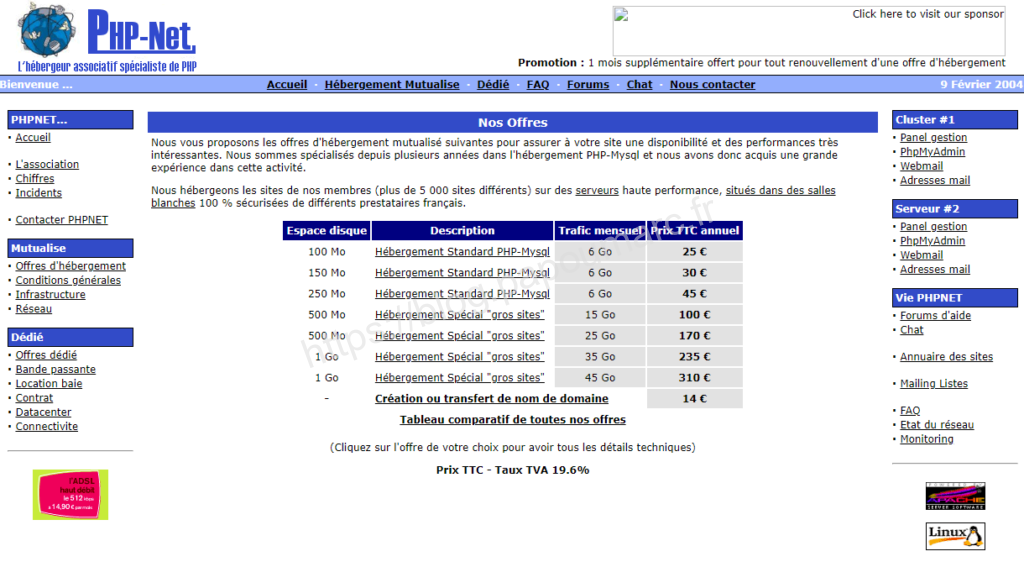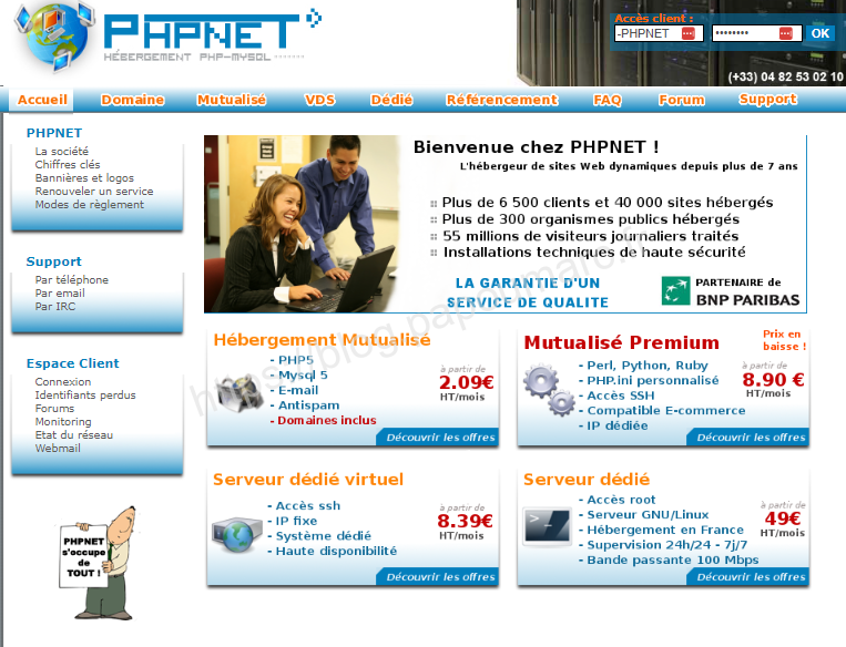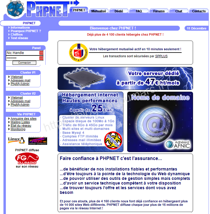 Fin 2004 PHPNET atteint le record de plus de 4000 clients, ce qui est en fait un des acteurs majeurs de l’hébergement en France après OVH. L’hébergement se professionnalise.