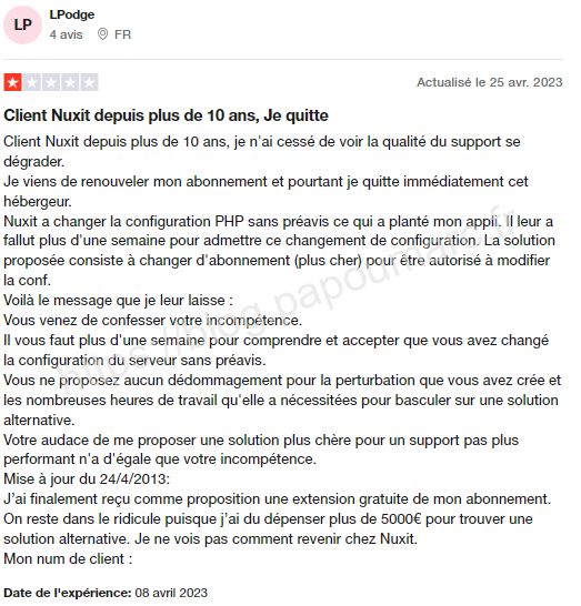 Externalisation du support en Tunisie (une catastrophe d’incompétence), pas de compétence interne en administration de serveur, et d’inexorable augmentation de tarif finiront par la session totale de l’entreprise en février 2021.
