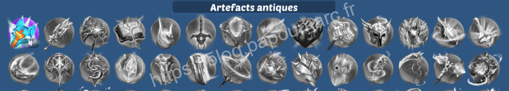 Les Artefacts antiques, bien que très aléatoires dans l’obtention, ceux ci peuvent être super intéressant, à condition de les monter un peu.