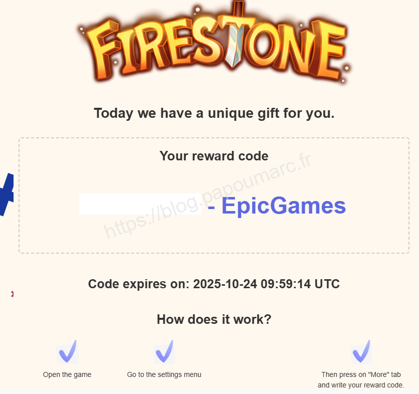 Il faudra dans le dernier onglet du panneau de configuration renseigner votre mail, cela vous permettra de recevoir, une fois par semaine, un petit code à renseigner pour obtenir des bonus. Attention les bonus sont aléatoire, il y a parfois des bonnes surprises.